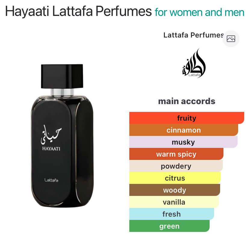 Hayaati by Lattafa Perfumes is a Woody Aromatic fragrance for women and men.