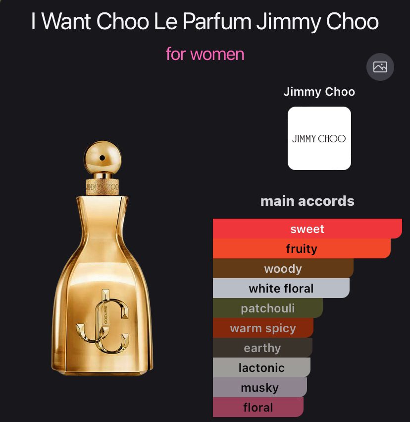 I Want Choo Le Parfum by Jimmy Choo is a Floral Fruity Gourmand fragrance for women.