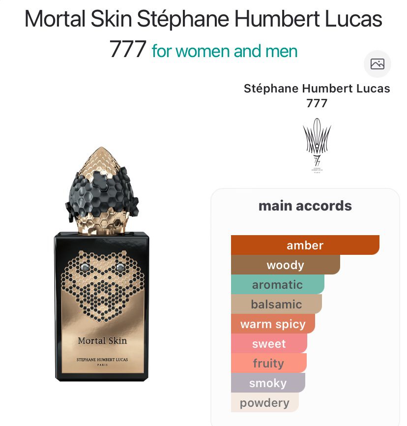 Mortal Skin by Stéphane Humbert Lucas 777 is an Oriental Woody fragrance for women and men.