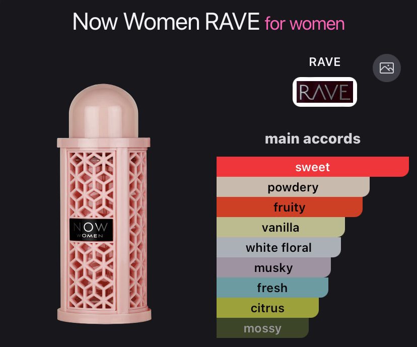 Now Women by RAVE is a fragrance for women.