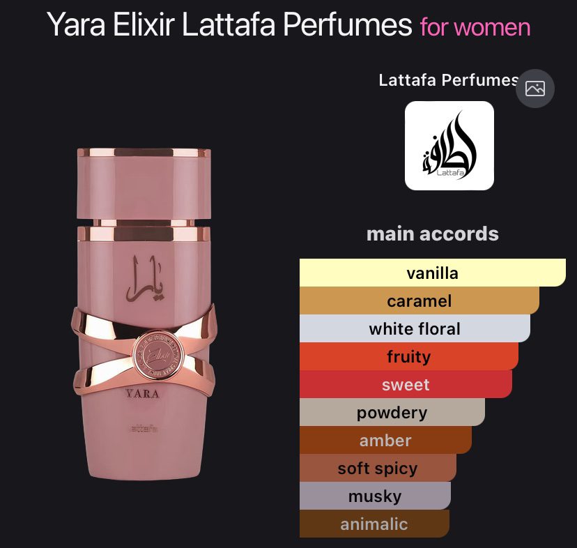 Yara Elixir by Lattafa Perfumes is an Oriental Vanilla fragrance for women